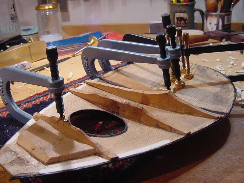 Spruce cleats were fitted and glued over the repaired cracks: